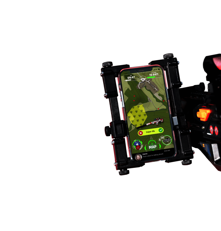 Optional können die Spieler ihre Telefone für zusätzliche Funktionen und zur Steuerung ihrer Laserwaffe verwenden.